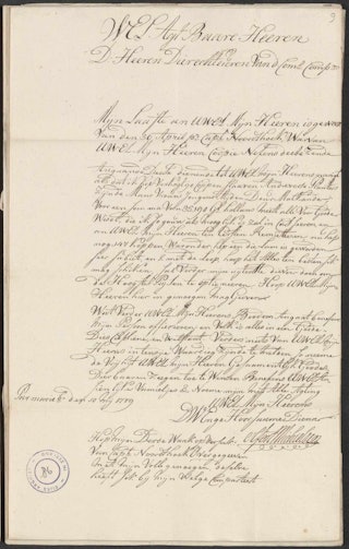 Uw weledelachtbare mijne heren, de weledele en gehoorzame dienaar,